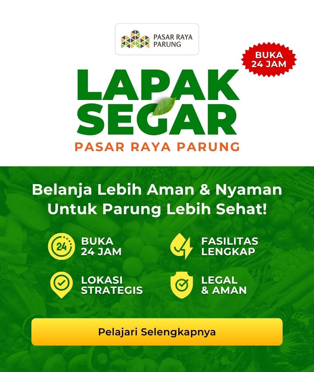 Belanja lebih nyaman, lengkap, dan seru di Pasar Raya Parung! Dilengkapi fasilitas dan layanan lengkap untuk memenuhi semua kebutuhan.